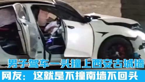 男子驾车一头撞上西安古城墙,网友这就是不撞南墙不回头