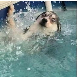 主人带二哈去学游泳结果它一不小心踩空了