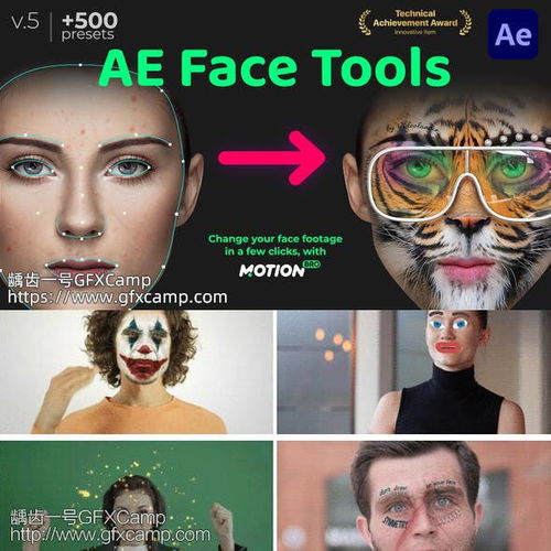 ae脚本人脸面部跟踪合成换脸表情美颜变形美容滤镜特效插件预设aefacetoolsv4.1龋齿一号gfxcamp